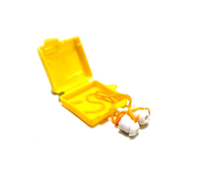 Warna: Putih Memberikan peredaman kebisingan yang baik dan melindungi telinga pemakai dari suara keras dengan kotak plastik kuning dan tali leher CE EN352, SNR = 26 dB ANSI S3.19, NRR = 23 dB