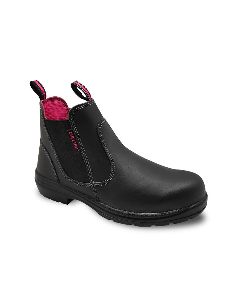 Cheetah Women Safety Dibuat dengan sol PU, fitur safety yang lengkap, dan bentuk yang disesuaikan dengan anatomi kaki wanita.